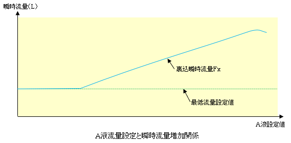 A液流量設定により吐出流量が増減します。主に水送洗浄時に使用します。但し最低流量以下にはなりません。